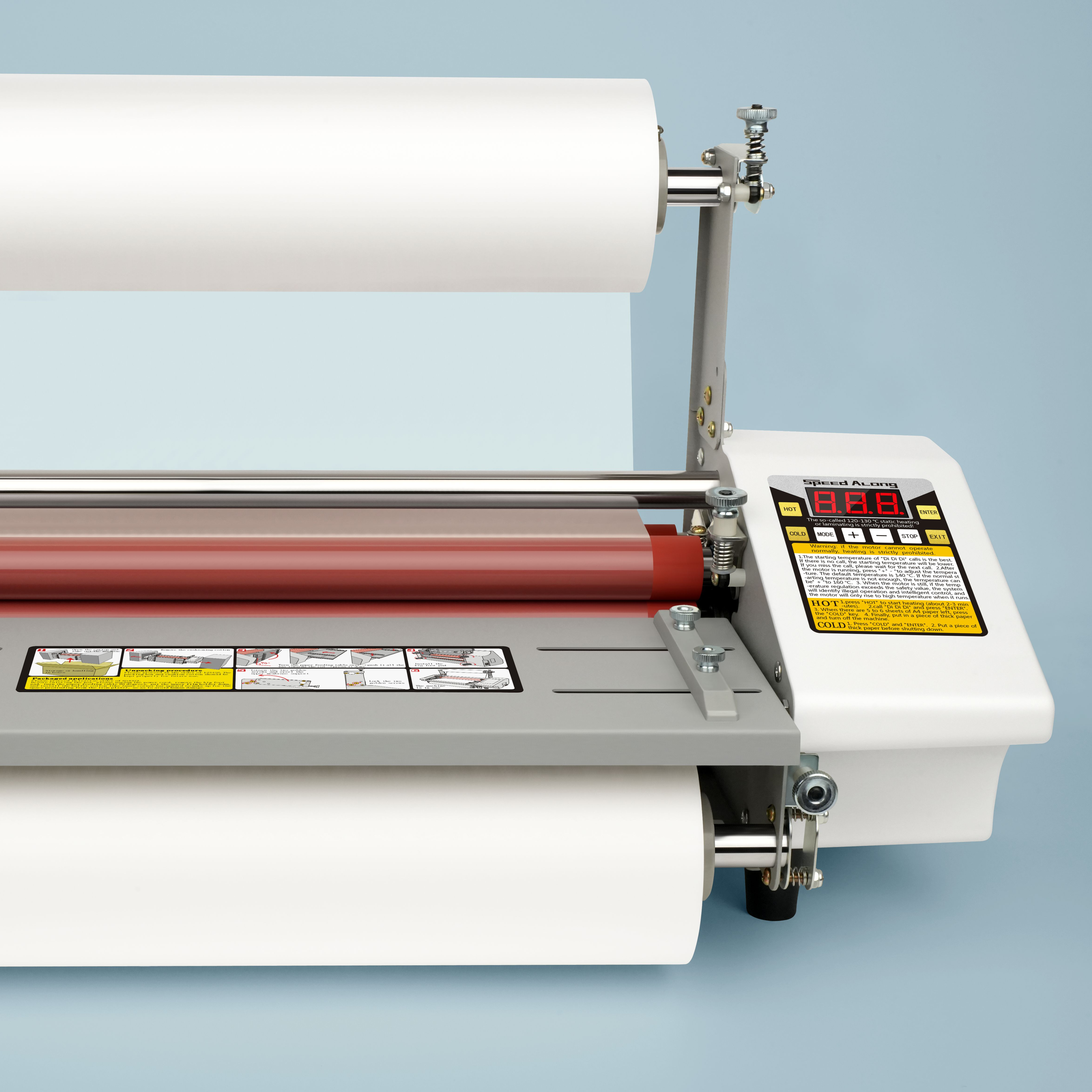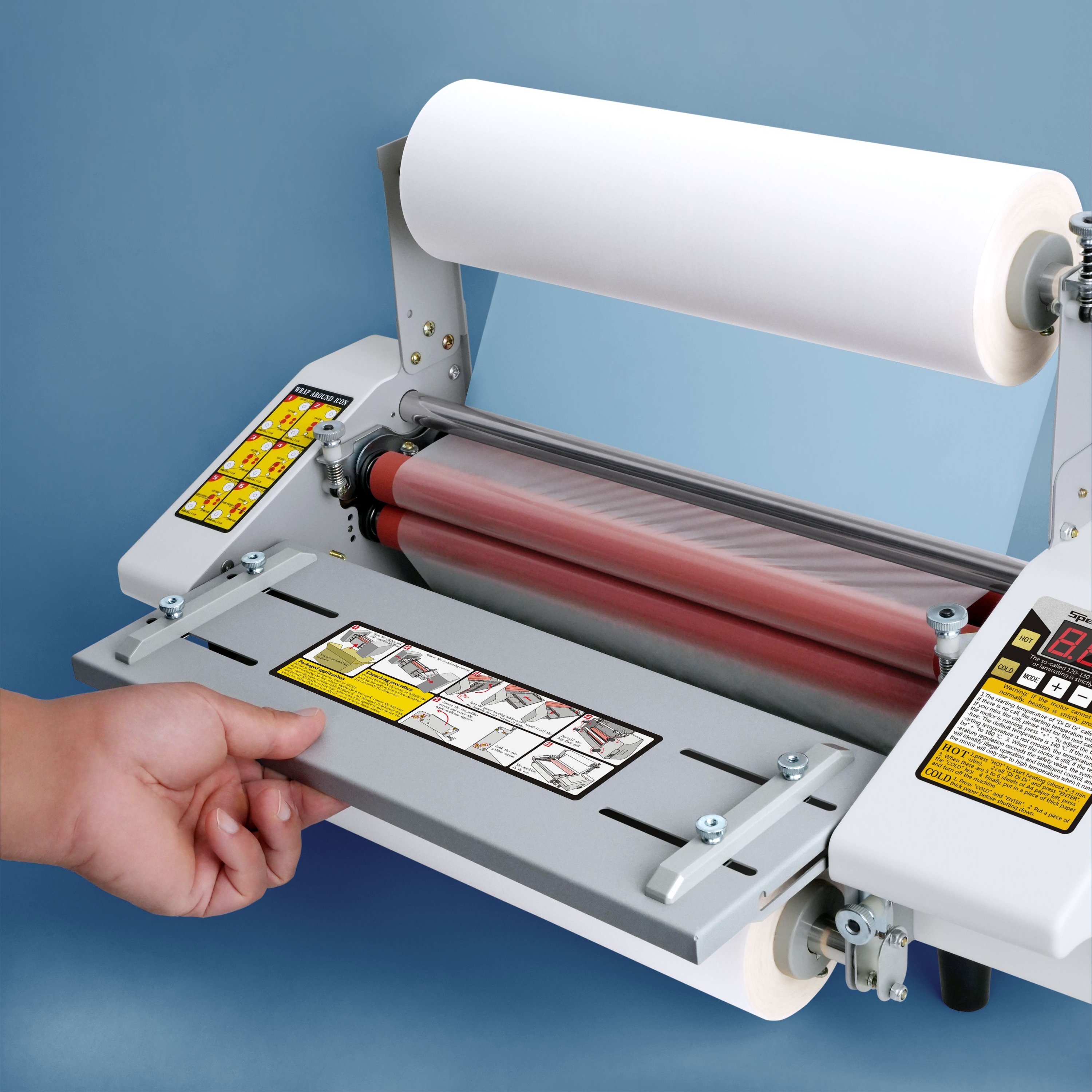 Bộ điều khiển chính của dòng máy cán màng5000 pro được cải tiến hiện đại và tối ưu hơn, chỉ với vài thao tác đơn giản để điều chỉnh nhiệt độ và chế độ cán màng thì bạn đã có thể sử dụng máy một cách dễ dàng, không mất nhiều công sức hay yêu cầu phải có kiến thức chuyên nghiệp về máy
