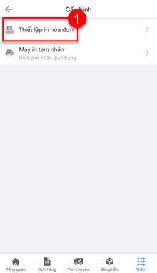 - Bước 1: Chọn Thêm > Cấu hình > Thiết lập máy in > Thiết lập in hóa đơn